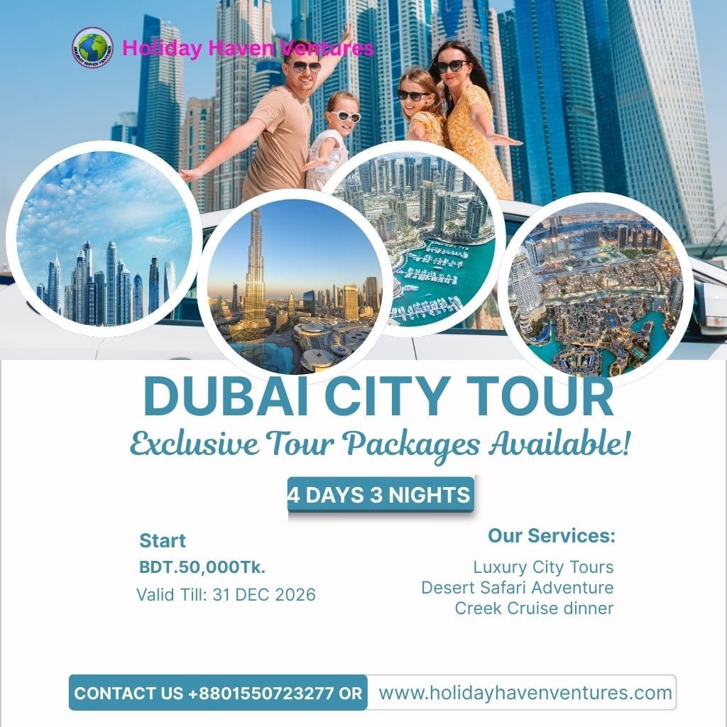 - Half Day Dubai City Tour – (9:00 – 14:00) TK. 3,500